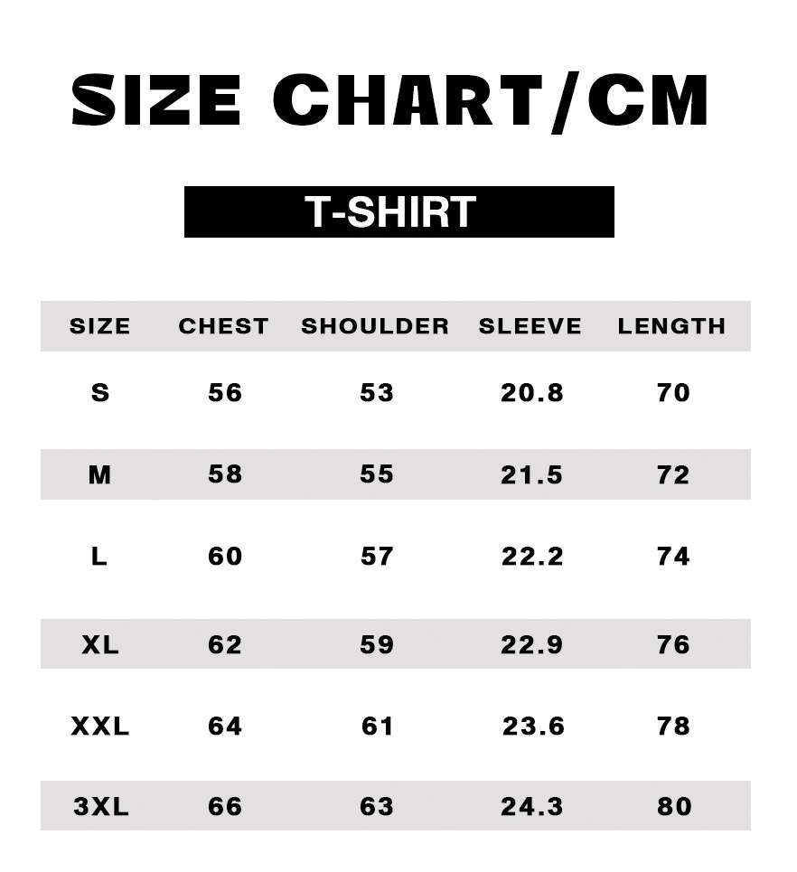 Size: from S to 3XL (chest width/T-shirt length/sleeve length) (cm)